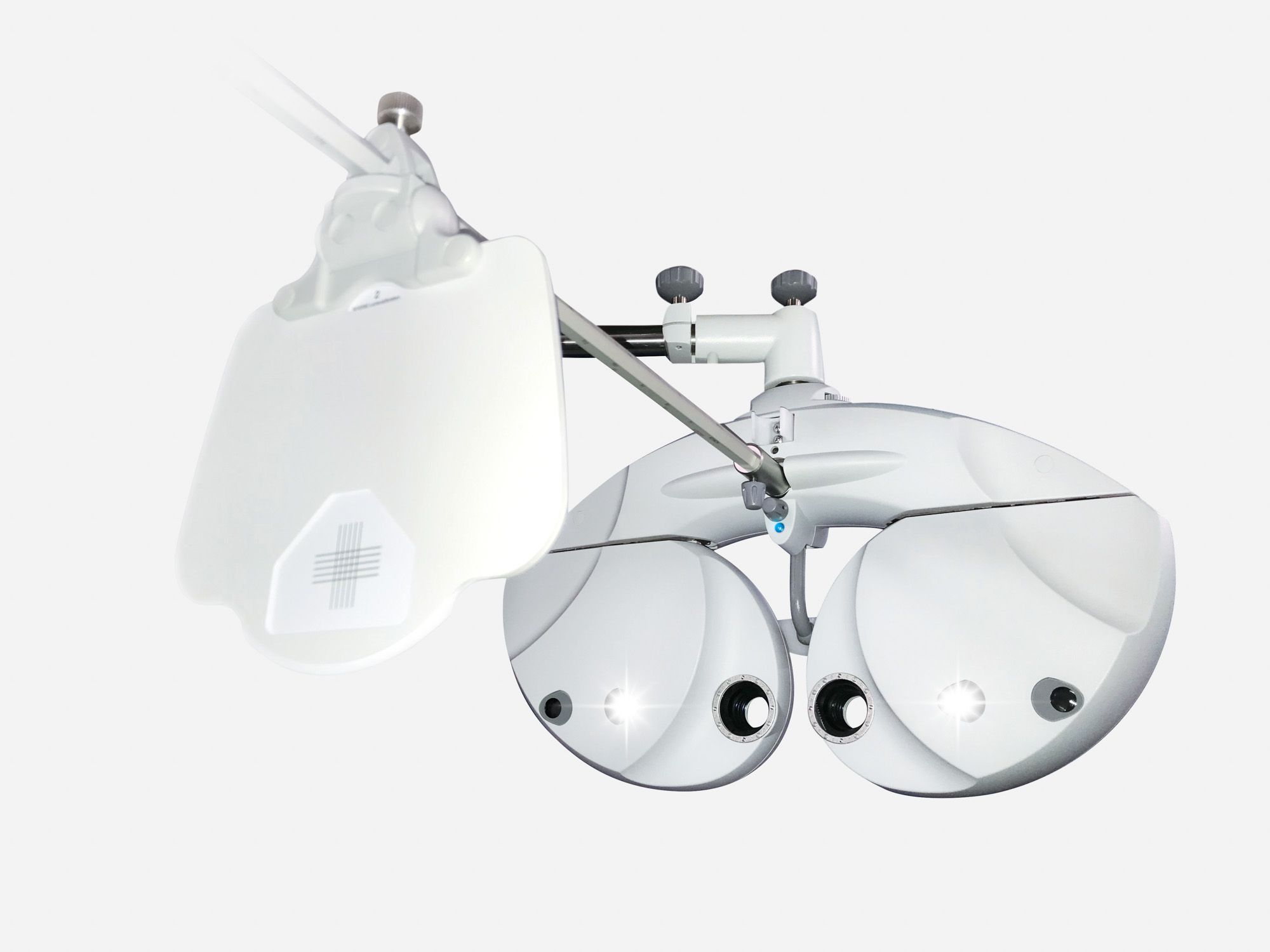 Der schlanke Phoropter besticht durch seine stromlinienförmige Gestalt. Hinter dem eindrucksvollen Design steckt modernste Technologie: Der ebenso leise wie schnelle Glaswechsel bietet dem Probanden ein angenehmes Refraktionserlebnis. Die integrierten Antibeschlag-Gläser sorgen für einen reibungslosen Refraktionsablauf.