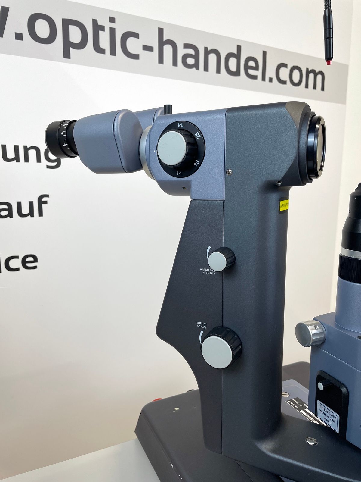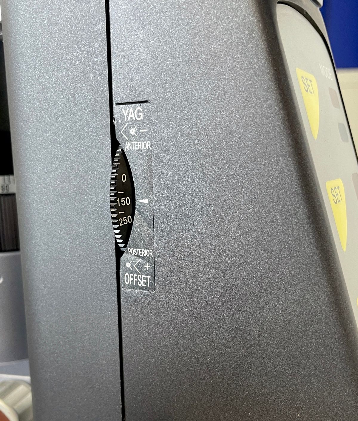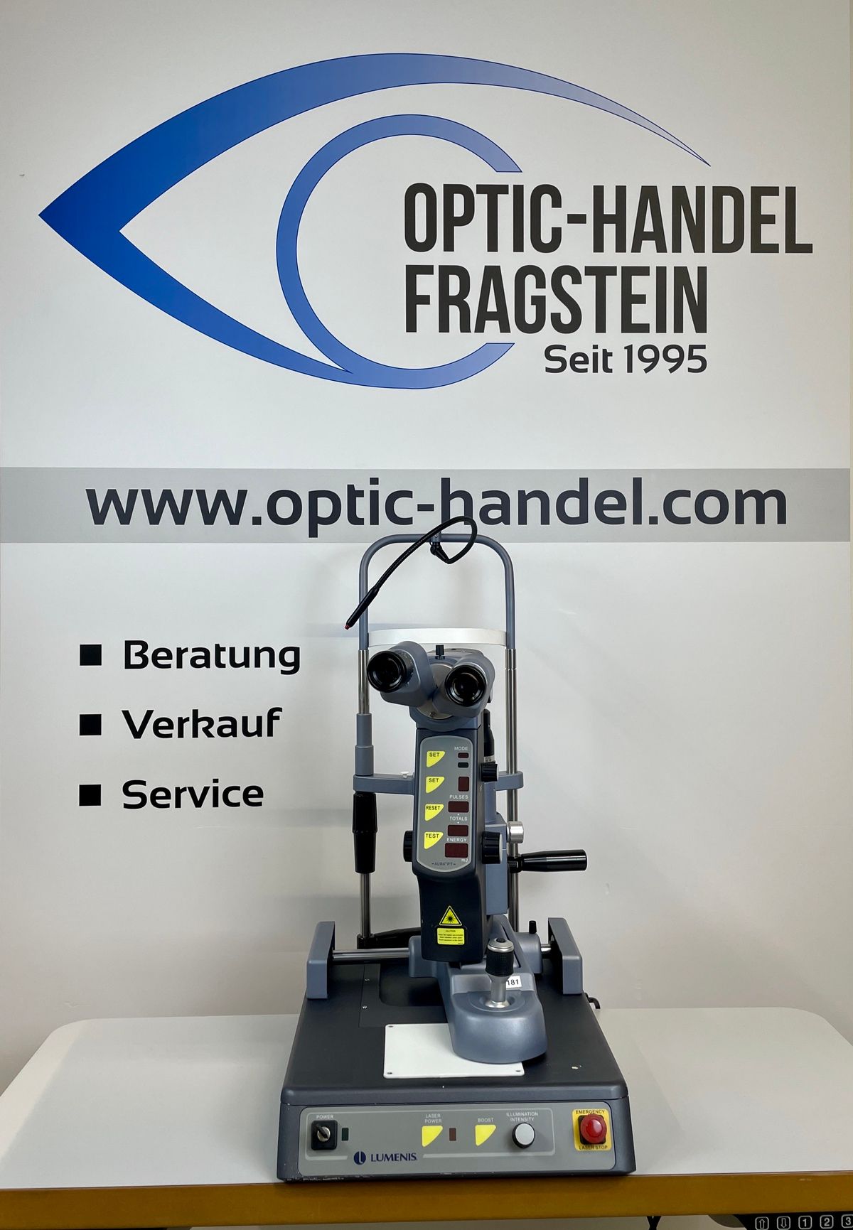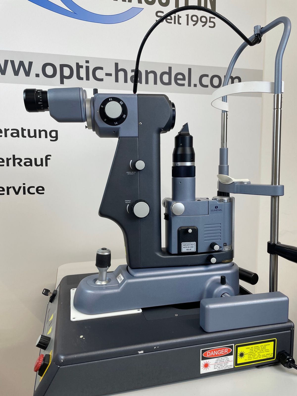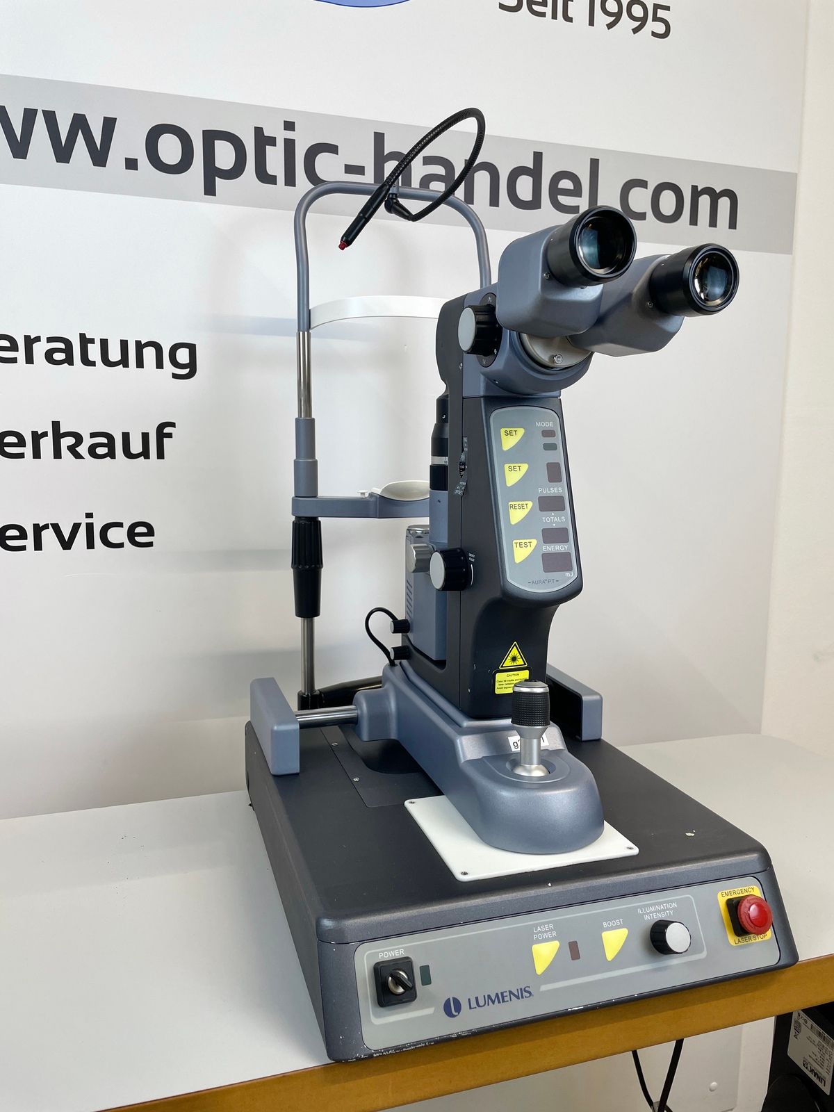 ein YAG Laser der Fa. Lumenis, auf einem rollstuhlgerechten Instrumententisch