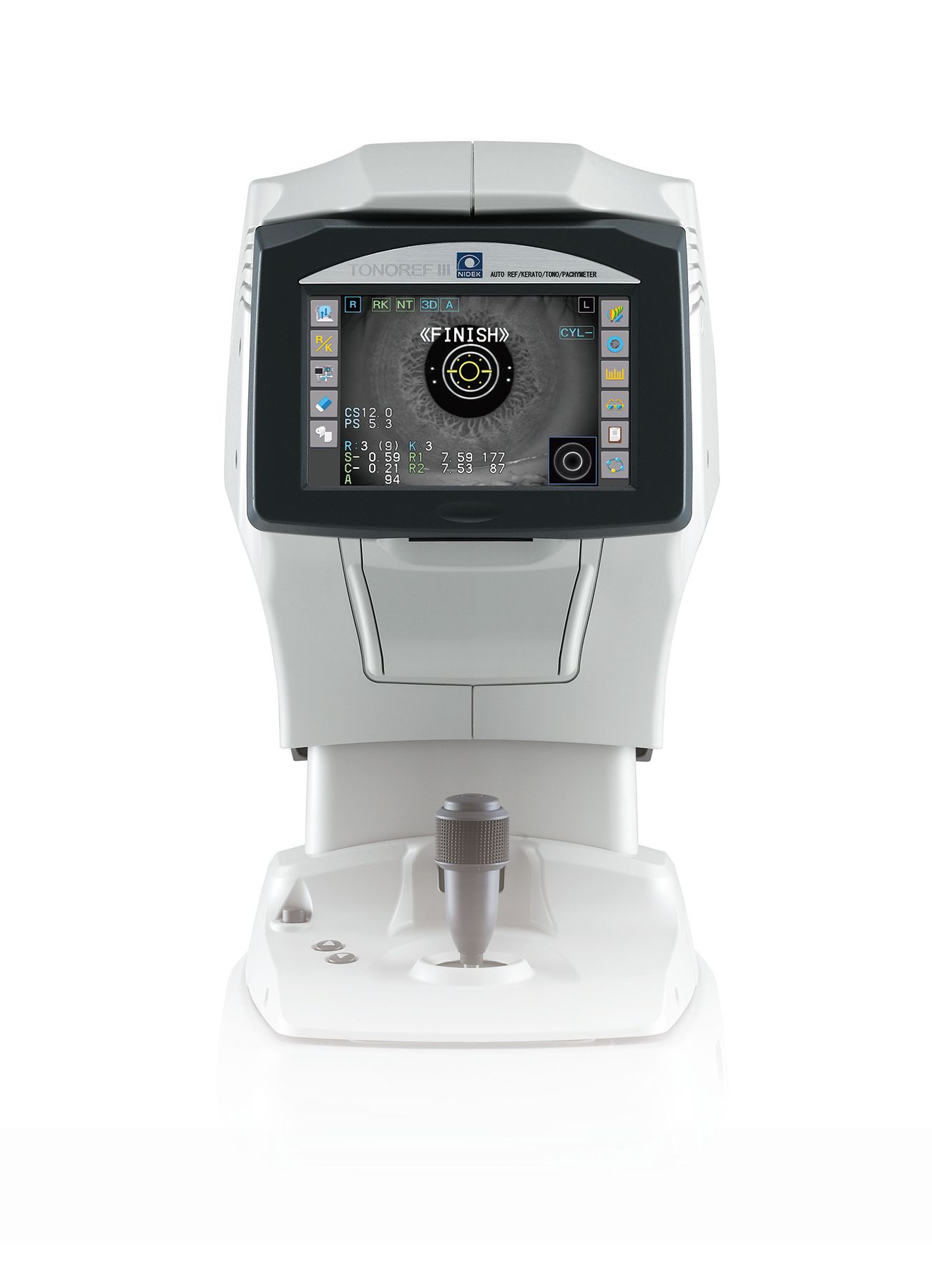 Das Tonoref™ III von OCULUS/NIDEK ist ein Kombinationsgerät aus einem Autorefrakto-Keratometer (ARK) und einem Non-Contact-Tonometer (NT) mit integrierter Messung der Hornhautdicke. Durch die Kombination der Messungen von Refraktion, Hornhautkrümmung, Augeninnendruck sowie Hornhautdicke erhalten Sie schnelle und präzise Informationen. Das Tonoref™ III überzeugt durch die hohe Reproduzierbarkeit der Messwerte und die einfache Handhabung. Alle Messergebnisse werden in einem übersichtlichen Display dargestellt.
