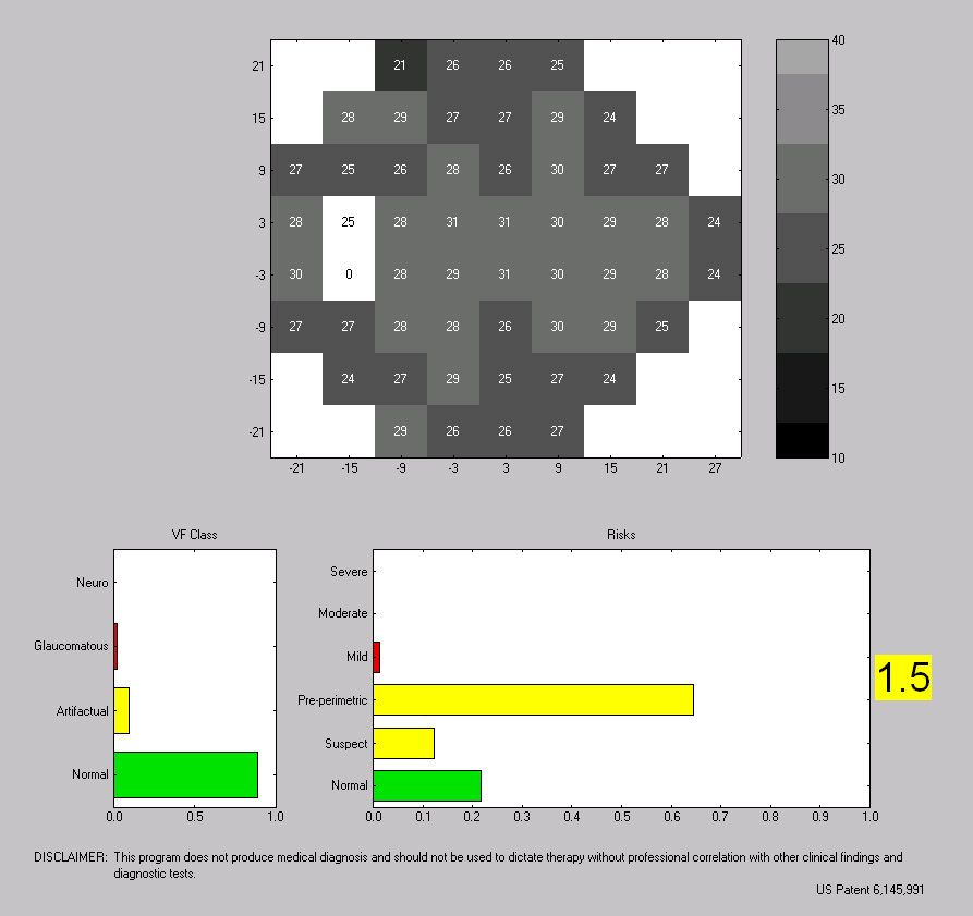 Das zentrale Gesichtsfeld wird zuverlässig überprüft. Auf diese Weise können Sie früh Ausfälle entdecken und zur Feststellung eines Glaukoms beitragen. Die Messung erfolgt kontaktlos und schnell.