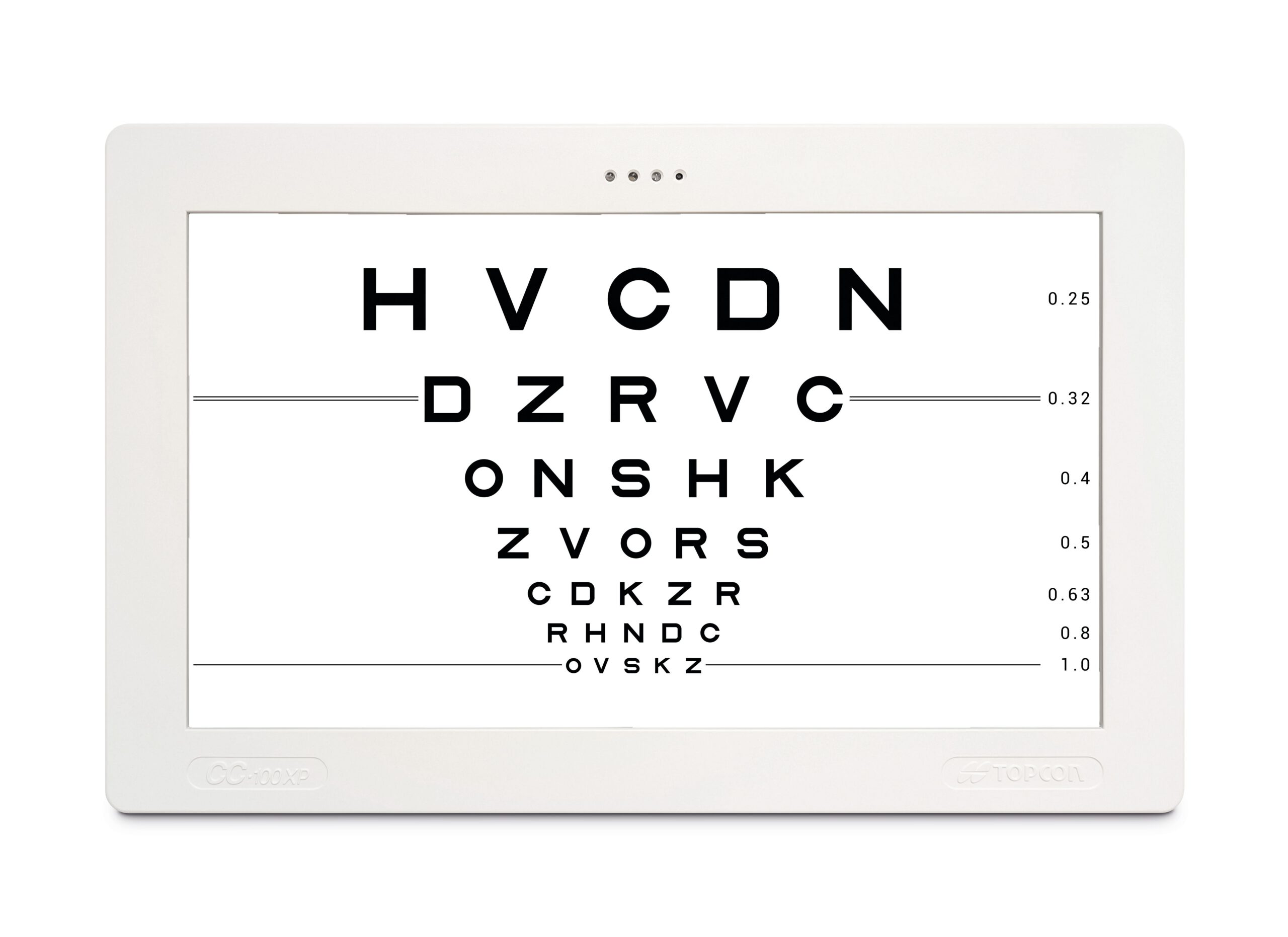 Das CC-100XP hat einen hochauflösenden, kontrastreichen und über große Helligkeit verfügenden 22 Zoll LCD-Bildschirm. Das CC-100XP kann über den automatischen Phoropter CV-5000 von Topcon, eine Fernbedienung oder drahtlos über eine Tabletlösung mit dem CV-5000 bedient werden.